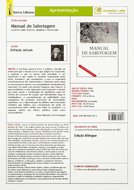 9789898701053 Manual de Sabotagem jelinek, Elfriede Deriva €16,50