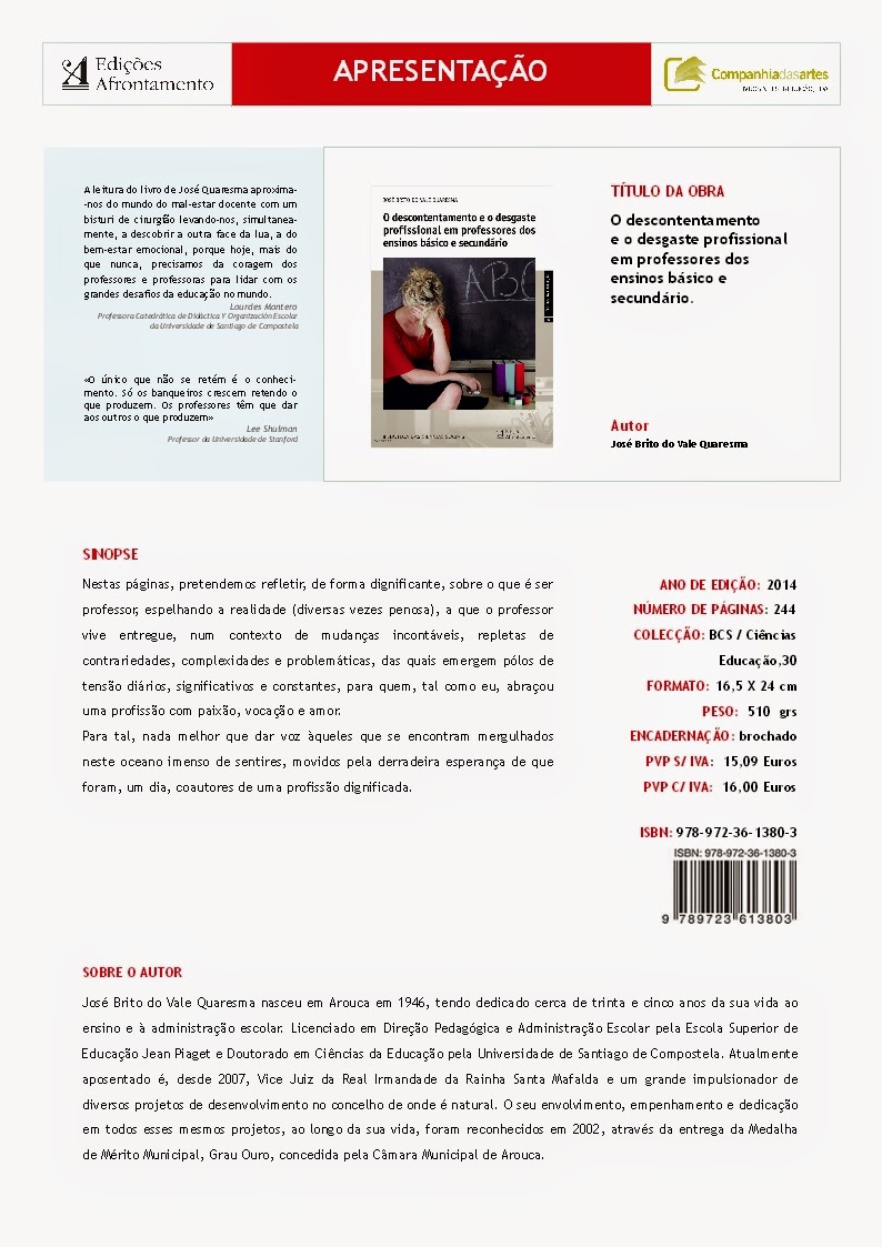 9789723613803 O Descontentamento e o desgaste profissional em professores dos ensinos básico e secundário Quaresma, José Brito do Vale Edições Afrontamento €16,00